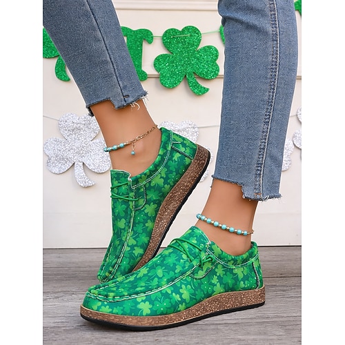 Per donna Casuale Quotidiano Festa di San Patrizio Tacco basso Punta Tonda Classico Casual Comfort Tessuto Allacciatura Verde