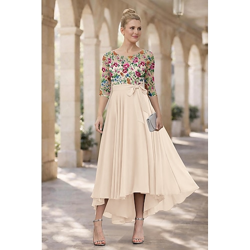Linea ad A Abito Abito alto-basso Lunghezza alla caviglia Abito da Cocktail Abito da invitata a nozze Abito da cerimonia per signora Mezza Manica Scollo Tondo Elegante Casual Alto Basso Formale