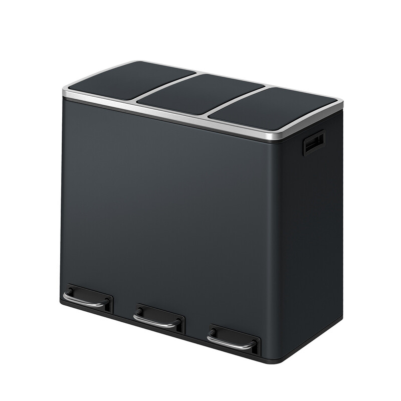 SONGMICSHOME Triple Compartment Recycling Bin, 3 x 18L Waste Pedal Bin for Kitchen, Soft-Close Lids, Steel, Gray