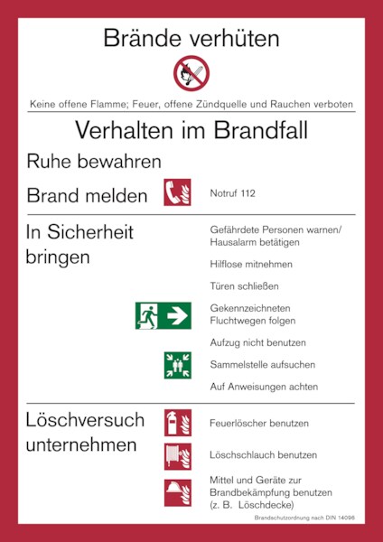 Aushang, Brandschutzordnung Teil A gem. DIN 14096 - Gebäude ohne Brandmeldeanlage - 210x297x1.5 mm Kunststoff