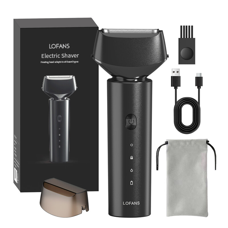 Rasoir électrique à grille pour homme avec tête à double lame flottante, rasoir électrique rechargeable usage sec et humide, rasoir sans fil USB‑C pour homme avec verrouillage de voyage pour le toilettage du visage. T9