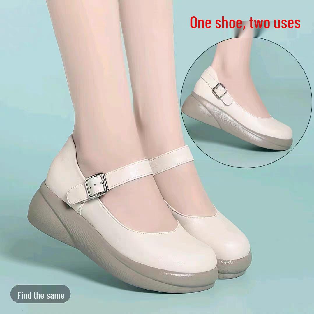 Retro Women's Genuine Leather Platform Wedge Shoes with Soft Cowhide and Thick Soles cm