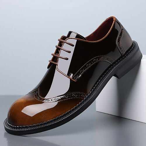 scarpe oxford da uomo in similpelle color cuoio lucido – calzature eleganti con lacci per ufficio, riunioni di lavoro ed eventi semi-formali