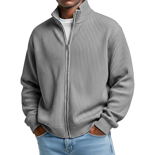 Per uomo Felpa Maglione lavorato a maglia A coste Maglia Standard Tasche Dita intere Con onde Bavero Stile dei soldi vecchi Casual / quotidiano Andare Abbigliamento Corte Primavera estate Nero Blu