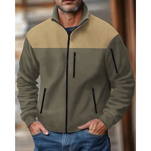 Per uomo Maglia Felpa con zip Felpa in pile Felpa con zip intera Marrone Marrone 2 Colletto Mao Blocco di colori Con zip Tasca Sport Outdoor Quotidiano Ferie Poliestere Vintage Streetwear Essenziale