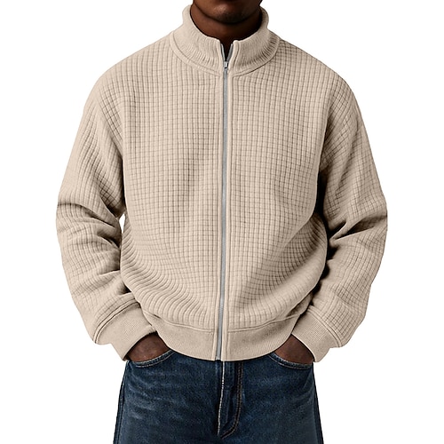 Per uomo Maglia Felpa a nido d'ape Felpa con zip intera Nero Bianco Verde chiaro Vino Blu marino Colletto Mao Semplice Con zip Testurizzato Casuale Quotidiano Sport Outdoor Streetwear Cool
