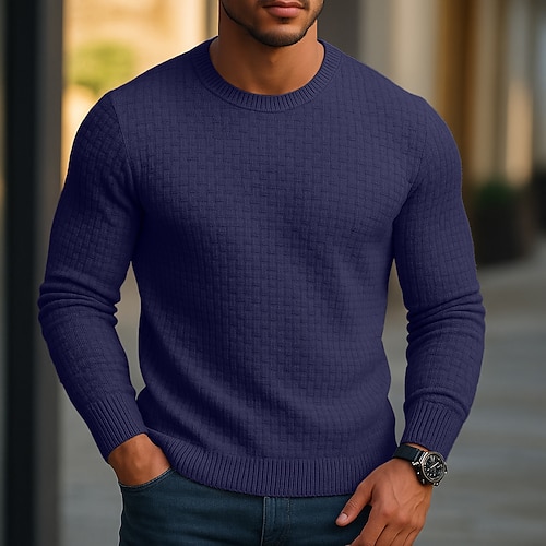 Per uomo Pullover Maglione Maglione lavorato a maglia A coste Maglia Standard Lavorato a maglia Liscio Girocollo Di tendenza Informale Da tutti i giorni Appuntamento Abbigliamento Autunno inverno Blu