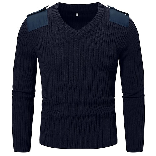 Per uomo Maglione Maglione a maglia A Coste Maglia Top Regolari Lavorato a maglia Semplice Scollo a V Moda Casual Vacanza Abbigliamento quotidiano Abbigliamento Autunno Inverno Nero Blu marino M L