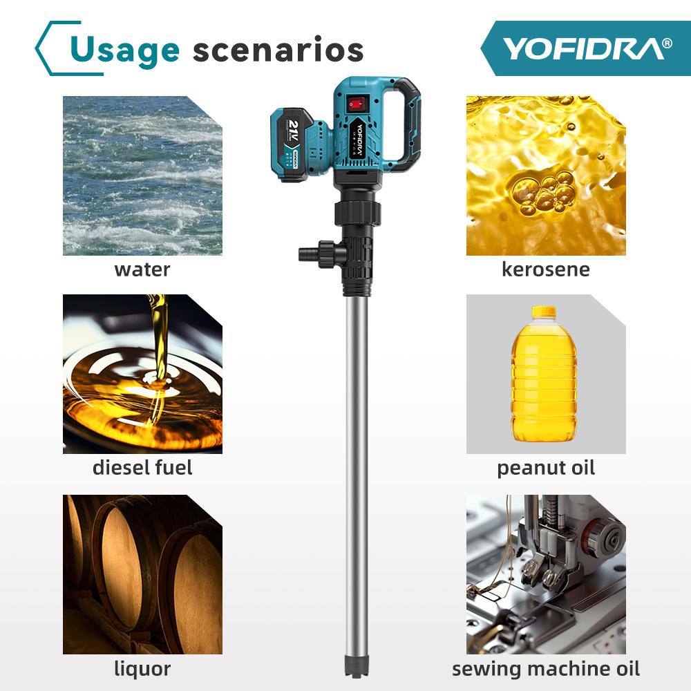 YOFIDRA 3-Gang-Bürstenlos-Wasserpumpe 80–150 l/min, Akku-Elektro-Ölpumpe für Garten, Boot, Pool, kompatibel mit Makita 21V-Akkus