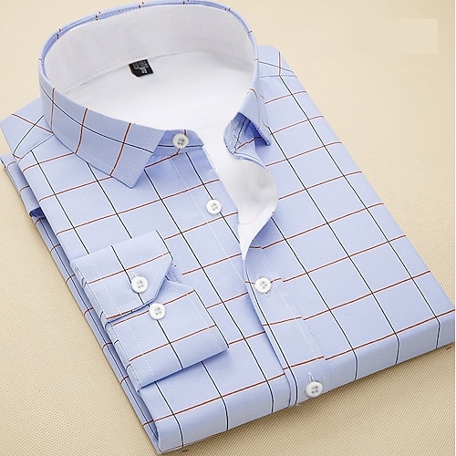 Per uomo Camicia Camicia elegante Camicia button-down Camicia a quadri A Quadri / A Righe / Chevron / Rotondo Abbigliamento quotidiano Abbigliamento Aziendale Bianco kaki Blu marino scuro Blu reale