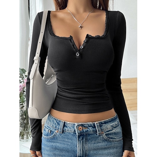 Per donna Blusa Floreale Elegante Casual Manica Lunga Collo quadrato Top Regolari Quotidiano Bottoni Nero Bianco Rosa Blu marino Primavera Autunno Inverno