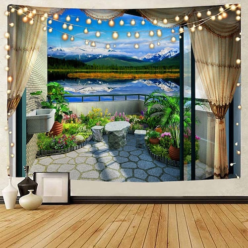 fuori dalla finestra balcone vista mare arazzo appeso murale arte grande arazzo murale decorazione foto sfondo tappeto tende casa camera da letto soggiorno decorazione