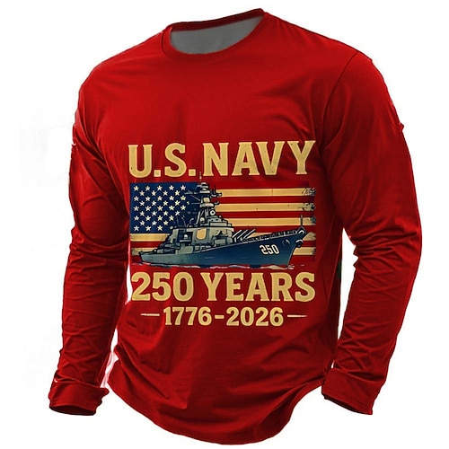 250° anniversario dell'America Per uomo 250° anniversario degli Stati Uniti Maglietta Manica Lunga maglietta Stampa 3D Girocollo Camicia Quotidiano Casual Quotidiano Viaggio Feste Blu Nero Rosso