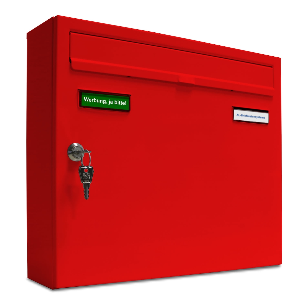AL Briefkastensysteme 1 x Basic Wand Briefkasten in RAL Farbe 3000 Feuer Rot für Post A4, wetterfest, Artikelnummer: 431P1EA1P3000