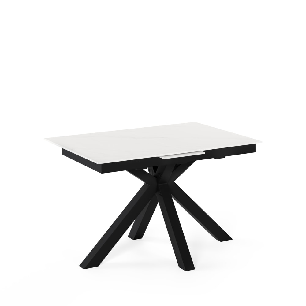 Tavolo allungabile in porcellana piano bianco e gambe nere