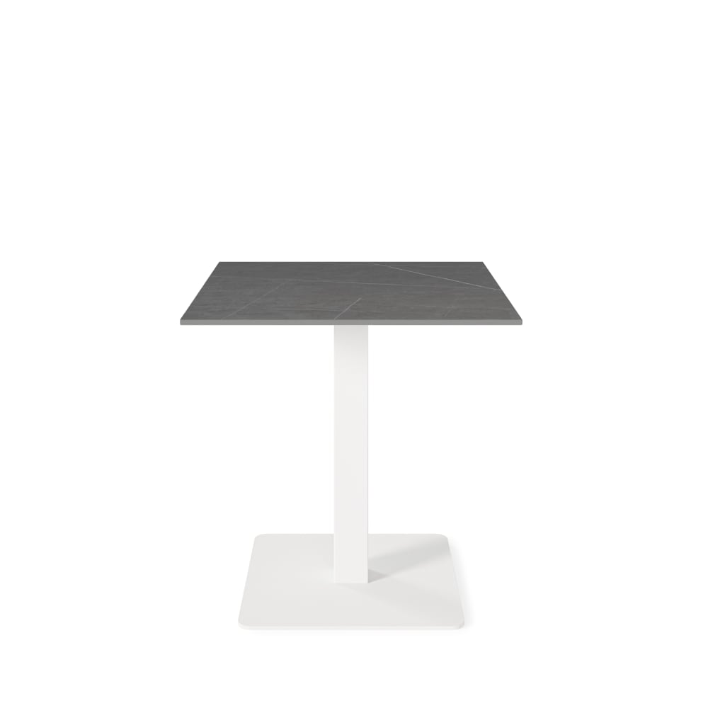Tavolino quadrato con piano grigio e gamba bianca