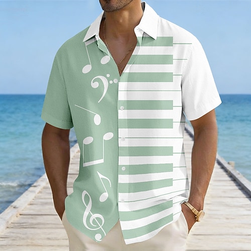 Per uomo Maestri del Consiglio Pianoforte Strumento musicale Camicia Camicia Estiva Camicia con Bottoni Manica Corta Moda Casual All'aperto Vacanza Abbigliamento Quotidiano Estate Primavera Collo