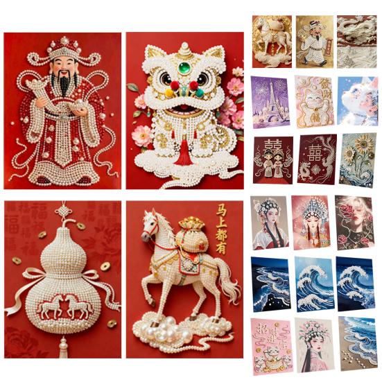 Plastic Pearl Painting Kit for Adults DIY 3D Pearl Art Craft Plastic Pearls Pre-Printed Canvas Set for Home Decor Craft Lovers
