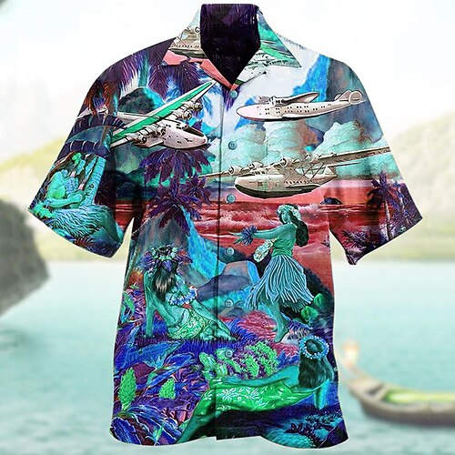 Per uomo Cartoni animati Maschera Piante Tropicali Camicia hawaiana estiva Camicia con collo camp Camicia Aloha Manica Corta Camicia Collo ripiegato Moda Hawaiano Designer All'aperto Streetwear