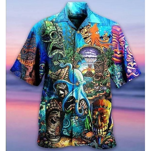 Per uomo Tropicale Polpo Camicia Camicia hawaiana estiva Camicia con collo camp Manica Corta Camicia Collo ripiegato Moda Designer Casual Streetwear Casuale Quotidiano Blu-verde Mare blu Giallo S M L