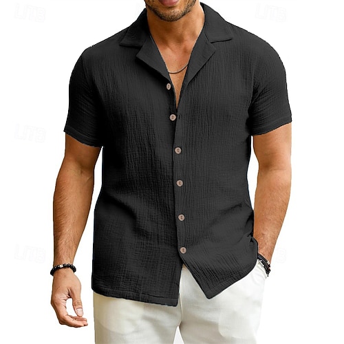 Per uomo Camicia Camicia di lino Camicia Estiva Abbigliamento da spiaggia Camicia con Bottoni Tinta unica Vacanza Casuale Nero Blu marino Verde Cachi Manica Corta Collo Camp Estate Primavera