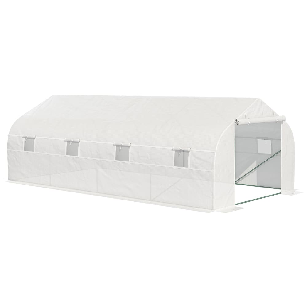 Outsunny Serra da giardino tunnel serre tunnel 18 m² 8 finestre 2 porte a battente telaio in ferro zincato verde