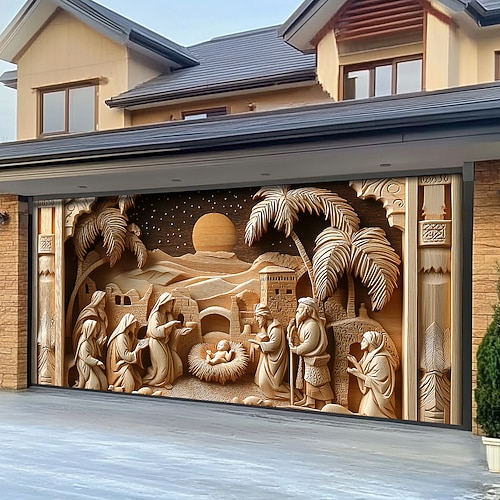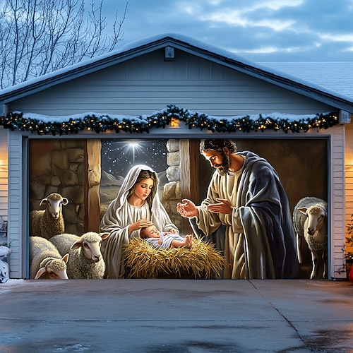 copertura per porta da garage esterna natalizia banner natalizio scena della natività grande fondale natalizio decorazione per festa porta da garage esterna decorazioni da parete per la casa