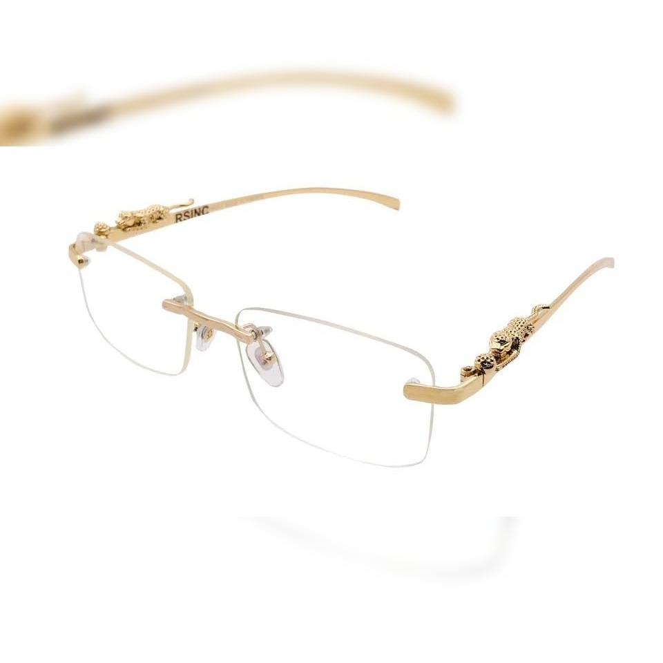 RSINC Importierte Herren randlose Brille Metall Panther Augenware Für Herren & Damen (535 54-18-140 RANDLOS Gold Panther) A2 YK-AH9W-PROA