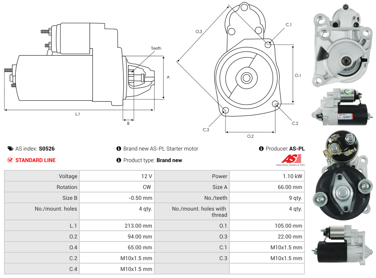 AS-PL Starter S0526 12V für MITSUBISHI RENAULT PEUGEOT DAF FORD VOLVO 90310316 7700703490 N3T42581
