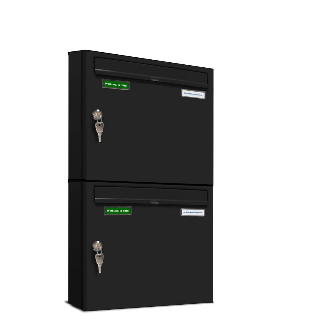 AL Briefkastensysteme 2 x Basic Wand Briefkasten in RAL Farbe 9005 Tief Schwarz für Post A4, wetterfest, Artikelnummer: 431P2EA1P9005
