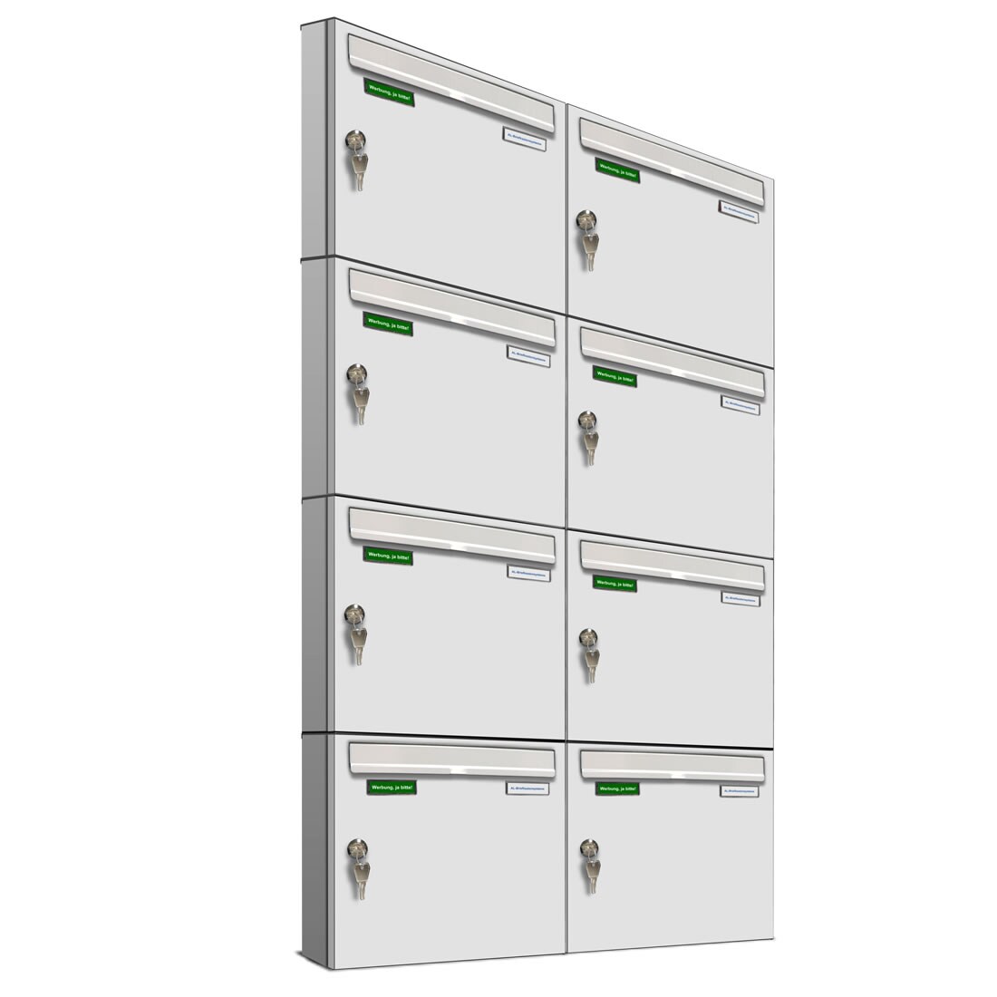 AL Briefkastensysteme 8 x Basic Wand Briefkasten RAL Farbe 9016 Verkehrs Weiss für Post A4, wetterfest, Artikelnummer: 431P8EA2P9016