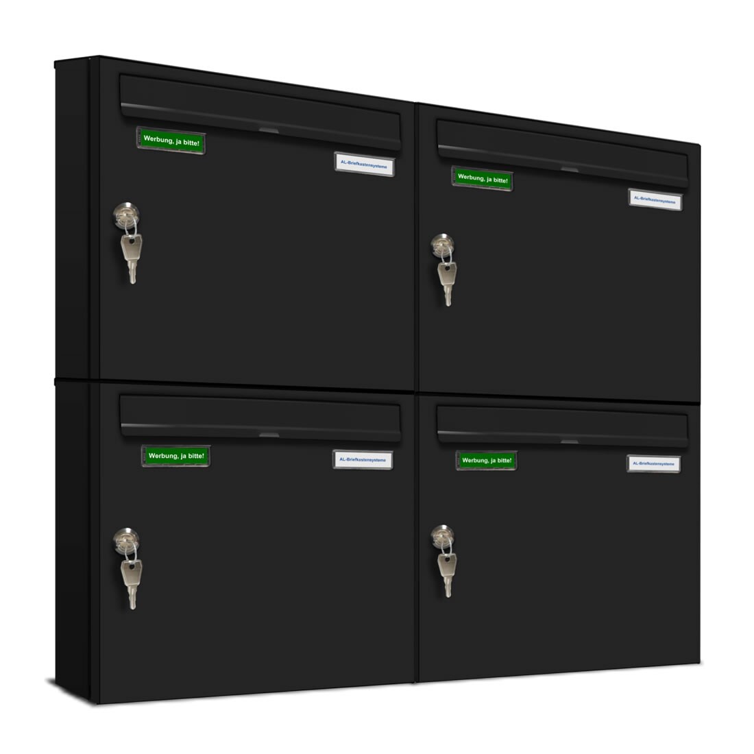 AL Briefkastensysteme 4 x Basic Wand Briefkasten in RAL Farbe 9005 Tief Schwarz für Post A4, wetterfest, Artikelnummer: 431P4EA2P9005