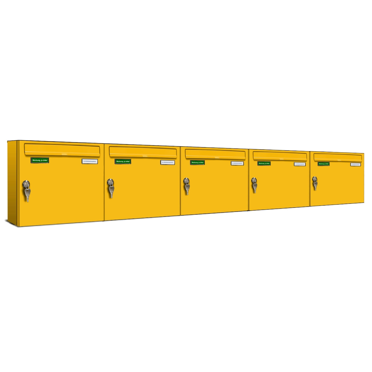 AL Briefkastensysteme 5 x Basic Wand Briefkasten in RAL Farbe Signal Gelb für Post A4, wetterfest, Artikelnummer: 431P5EA5P1003