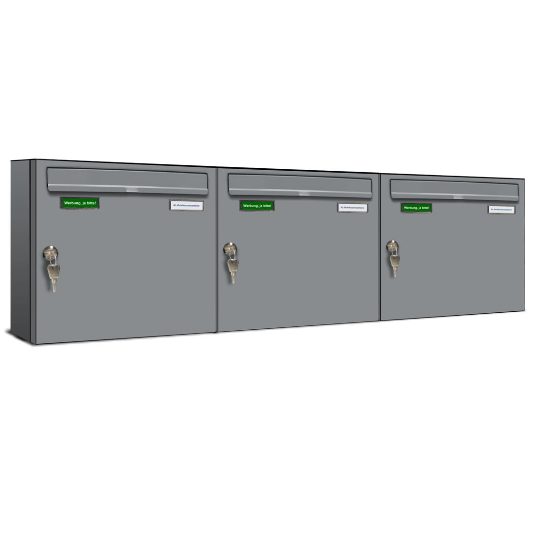 AL Briefkastensysteme 3 x Basic Wand Briefkasten RAL Farbe 9006 Weiss Aluminium für Post A4, wetterfest, Artikelnummer: 431P3EA1P9006