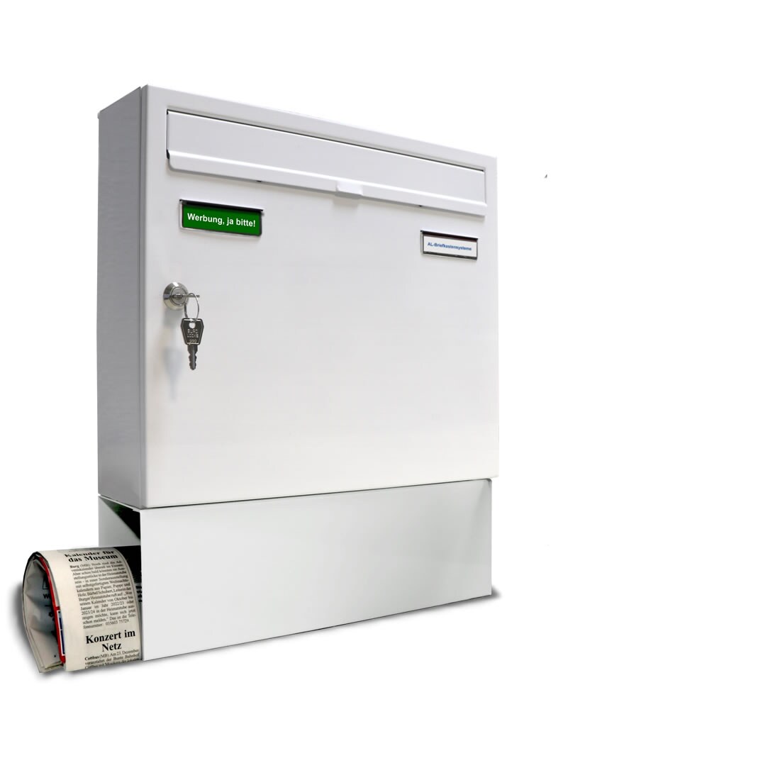 AL Briefkastensysteme 1 x Basic Wand Briefkasten RAL Farbe 9016 Verkehrs Weiss für Post A4, wetterfest, Artikelnummer: 431P1EA1ZFP9016