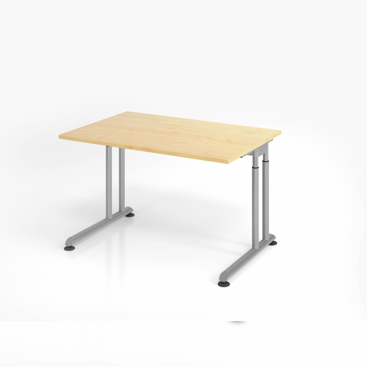 PROREGAL Schreibtisch Nilo | Ahorn | Silber Gestell | BxT 120x80cm | Arbeitshöhe 68-82cm | höhenjustierbar, 1cm Raster | C-Fuß-Gestell | Bürotisch