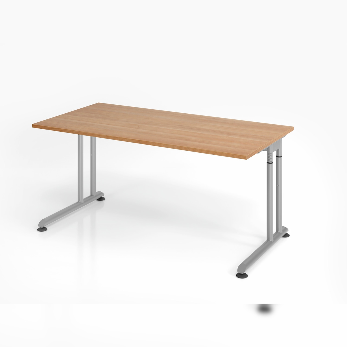 PROREGAL Schreibtisch Nilo | Nussbaum | Silber Gestell | BxT 160x80cm | Arbeitshöhe 68-82cm | höhenjustierbar, 1cm Raster | C-Fuß-Gestell
