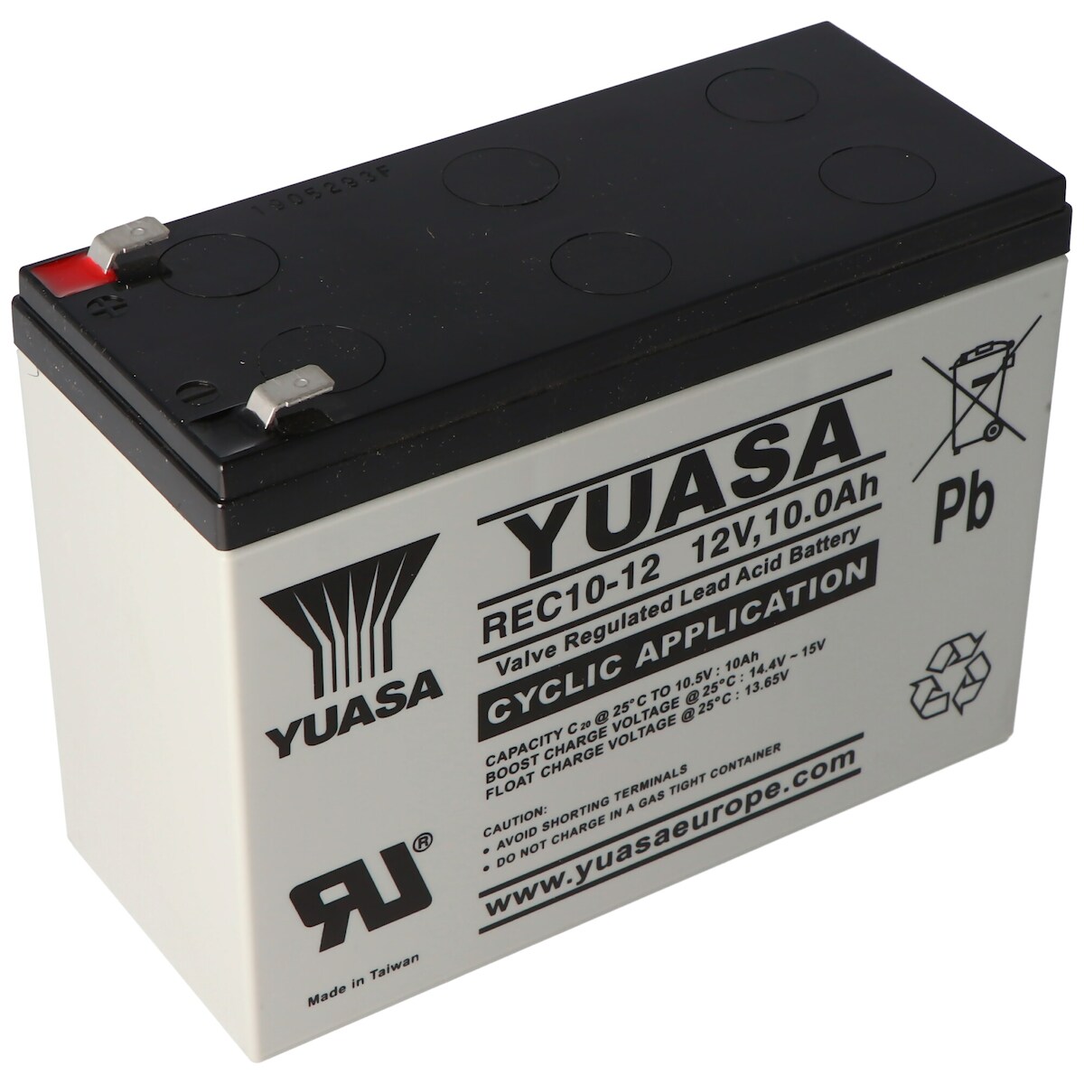 Yuasa Blei-Akku REC10-12 mit 12 Volt und 10Ah, 6,3mm Faston Steckkontakte
