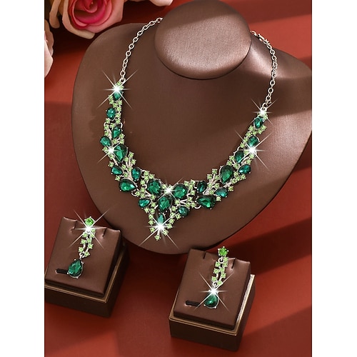 set di gioielli da donna in cristallo verde - elegante collana con strass e orecchini pendenti per feste di Natale, banchetti serali o regali per le feste