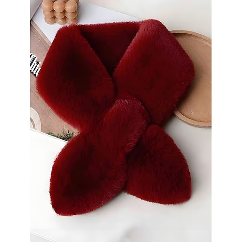 sciarpa natalizia in pelliccia sintetica da donna, morbido scaldacollo con nodo incrociato in peluche, elegante scialle invernale per feste e regali