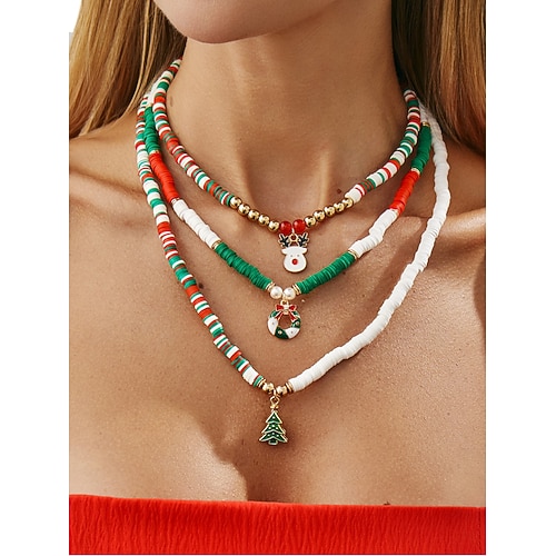 collana con ciondolo natalizio da donna, gioielli con catena pendente festiva con pupazzo di neve, renna e campanelle natalizie, graziosi accessori natalizi per feste e regali