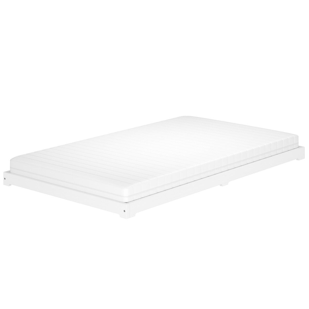 Erst-Holz Weißes Teenagerbett Futon extra niedriges Studentenbett 120x200 Kiefer V-60.47W-12 Rollrost und Matratze inkl.