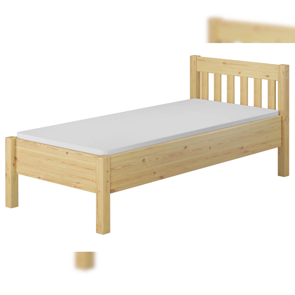 Erst-Holz Kieferbett natur Einzelbett Bettrahmen Futonbett 90x200 Massivholzbett ohne Rollrost 60.37-09 oR