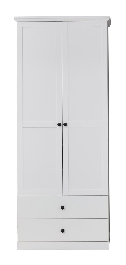 BrandsonBaxter Garderobenschrank 2 Türen, 2 Schubladen, 5 Einlegeboden weiß.