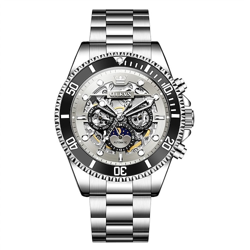 Nuovo orologio da uomo business del marchio olevs con luce notturna, calendario, indicatore 24 ore, fase lunare e visualizzazione della settimana. Orologio meccanico seiko completamente automatico per