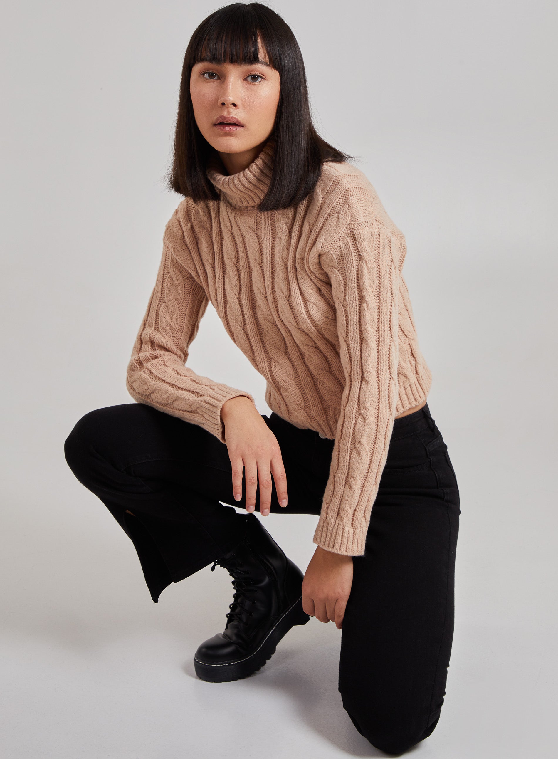 Pink Vanilla Womens Hopeful - Cropped Cable Knit Jumper - Camel - Size Small/medium | Pink Vanilla Sale | Discount Designer Brands