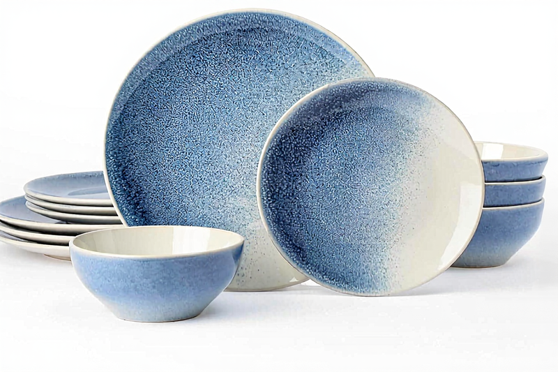 Richmount Glacier-Serie Geschirrset – 12-teiliges Keramik-Set für 4 Personen – enthält Speiseteller/Salatteller/Müslischalen – spülmaschinen- und mikrowellengeeignet – Himmelblau