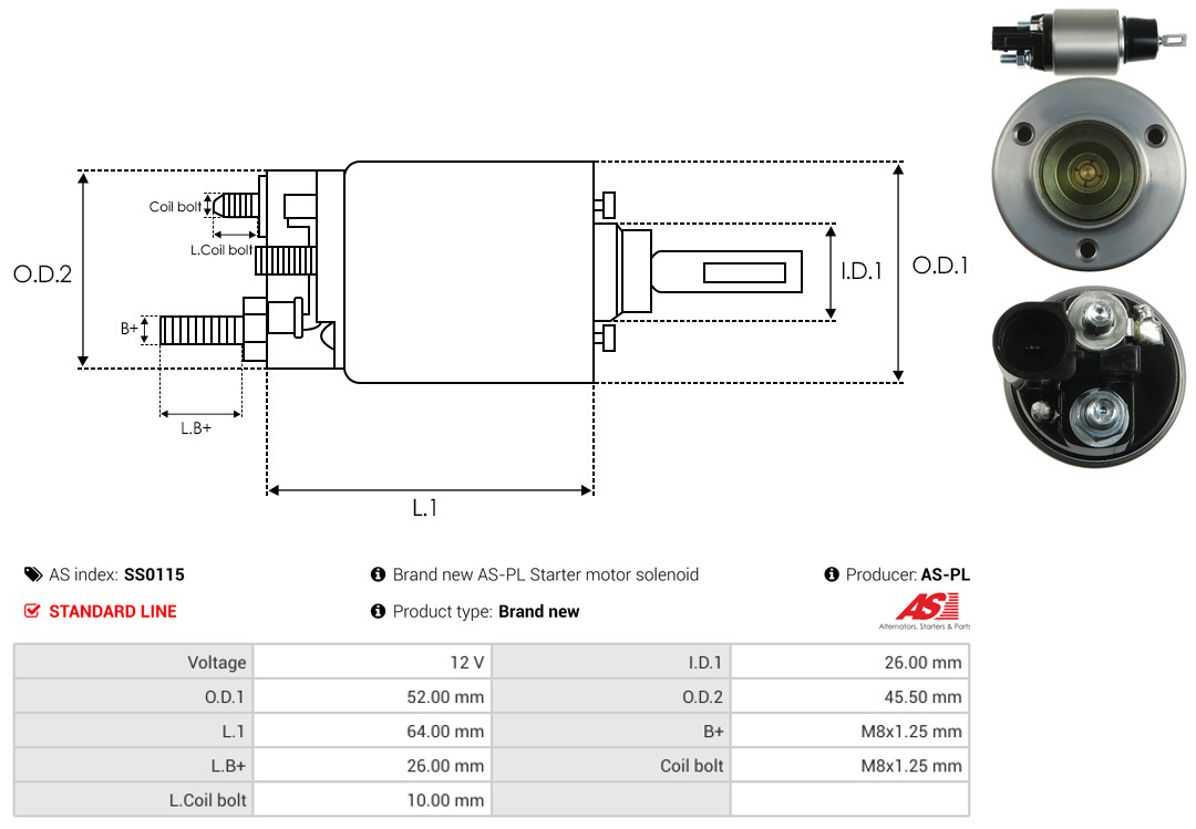 AS-PL Magnetschalter, Starter Universal 12V für VW 81011128 06E911287 2H0911287B SS0115