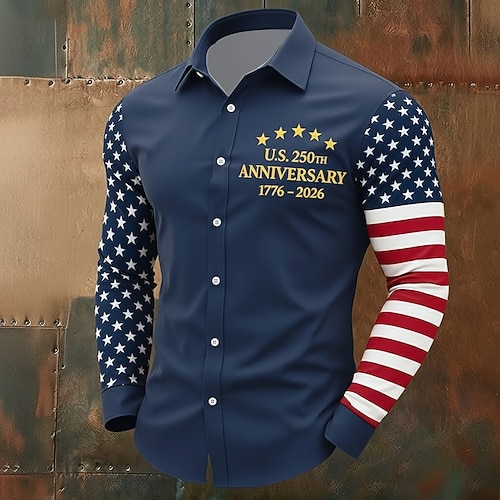 Per uomo Bandiera degli Stati Uniti Patriottico 250° anniversario degli Stati Uniti Camicia Camicia con Bottoni Manica Lunga Vintage Retrò Ferie Casual Quotidiano Primavera Autunno Collo ripiegato
