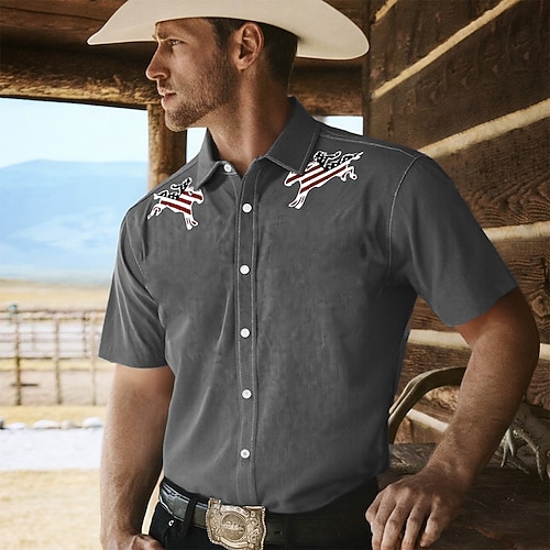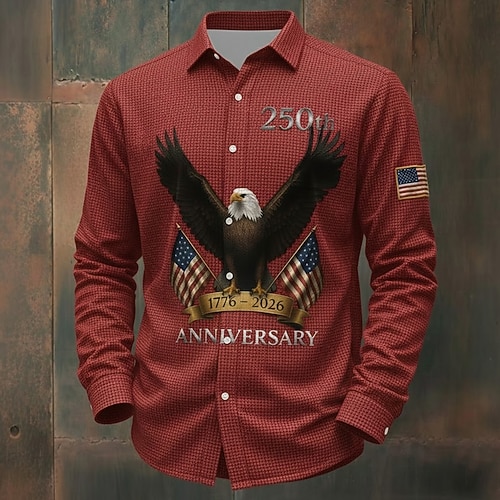 Per uomo Aquila Bandiera degli Stati Uniti 250° anniversario degli Stati Uniti Camicia Camicia Western Camicia da cowboy Manica Lunga Vintage Retrò Vacanza Ferie Primavera Autunno Collo ripiegato